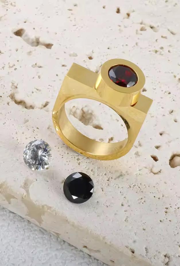 Anillo de Acero con tres cristales